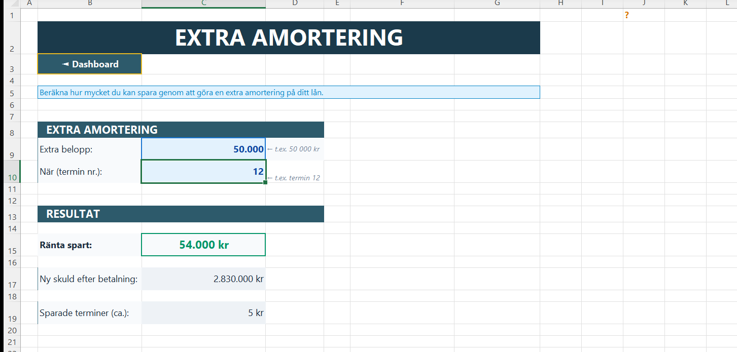 Beräkna besparing vid extra amortering